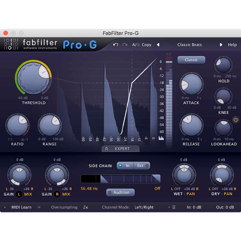 Expanda com estilo Um bom gate / expansor é uma ferramenta indispensável em qualquer situação de mixagem e ao vivo. FabFilter Pro-G oferece tudo o que você poderia desejar: algoritmos perfeitamente ajustados, controle completo sobre a ligação do canal da cadeia lateral, medição excelente e design de interface excelente. Roteamentos de cadeia lateral ultraflexíveis Além do excelente som, o FabFilter Pro-G também oferece roteamento muito flexível. Você pode escolher entre processamento mono e estéreo de meio / lado. No modo especialista, a entrada de cadeia lateral externa está disponível com link e roteamento de canal totalmente personalizável. Medição clara e precisa O FabFilter Pro-G combina medidores de nível de entrada / saída inteligentes com uma exibição de nível em tempo real e curva de transferência. Tudo foi projetado especificamente para fornecer um feedback claro sobre o processamento das configurações de porta / expansor atuais, permitindo que você as configure facilmente. Goodies FabFilter Claro, você também terá todos os goodies FabFilter usuais: knobs perfeitamente ajustados, MIDI Learn, Smart Parameter Interpolation para transições de parâmetros suaves, um arquivo de ajuda excelente com dicas de ajuda interativas, otimização SSE e muito mais! Principais recursos Seis algoritmos de expansão / gate meticulosamente ajustados, incluindo expansão para cima e abaixamento Curvas de liberação de ataque dependentes do programa Baixo uso da CPU range Faixa ajustável, configurações de joelho de tempo de espera tempo adiantado de até 10 ms®® Medição útil e precisa, incluindo uma exibição de nível em tempo real®® modo Expert que oferece opções de cadeia lateral altamente personalizáveis®® Mono, estéreo mid / side processing®® Up para quatro vezes a sobreamostragem de fase linear operation mode Modo de operação de latência zero Acionamento MIDI: abra o gate / expansor com seu teclado MIDI Opção de cadeia lateral externa ¿½ï¿½ Fácil de configurar para cenários comuns de passagem / expansão com as predefinições de fábrica incluídas ® ® Aceleração gráfica com GPU ® ® Clique duas vezes na entrada de texto de valores de parâmetro ® ® Plug-ins mono estéreo disponíveisï ¿½ï¿½ Suporta superf�ies de controlo de hardware Pro Tools comuns�� MIDI Learn�� Desfazer / refazer compara�o A / B�� Smart P arameter Interpolation®® Arquivo de ajuda extenso com dicas de ajuda interativa®® Disponível nos formatos VST, VST3, Audio Units, AAX Native AudioSuite (todos 64 bits e 32 bits), bem como RTAS (somente 32 bits) )