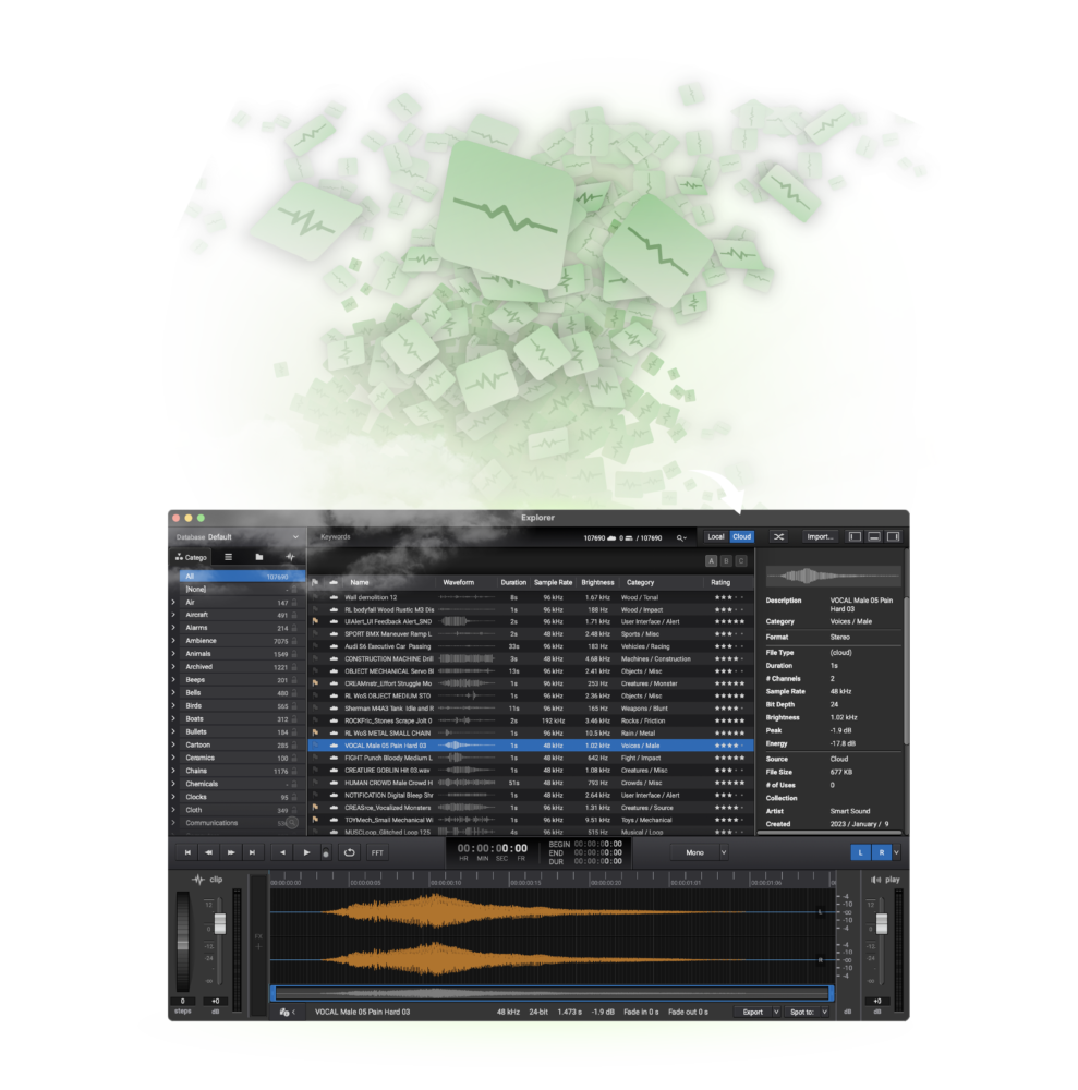 O Explorer SFX Cloud é um serviço de nuvem com várias coleções de sons com mais de 100.000 efeitos sonoros profissionais disponíveis para todos os profissionais de som. De criadores de conteúdo a designers de som, economize horas de trabalho e encontre todos os sons que você precisa em apenas alguns segundos!